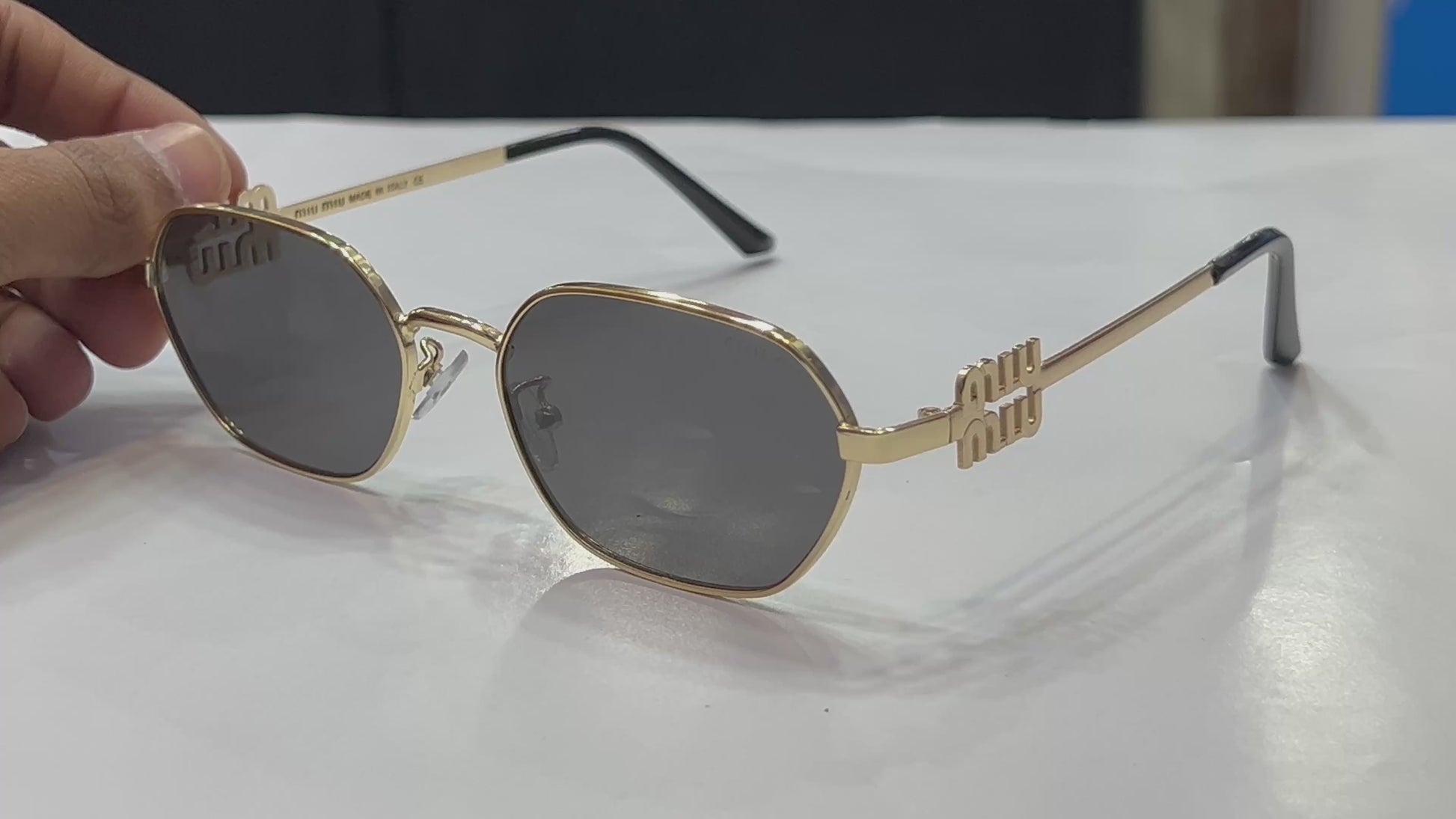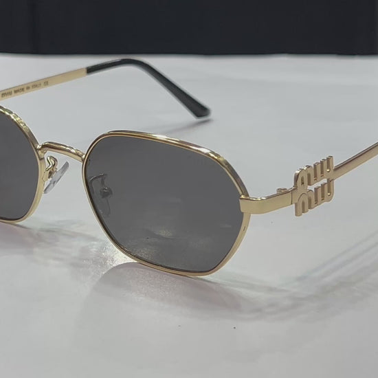 MIU MIU Signature Gold Rectangular Metal Sunglasses
