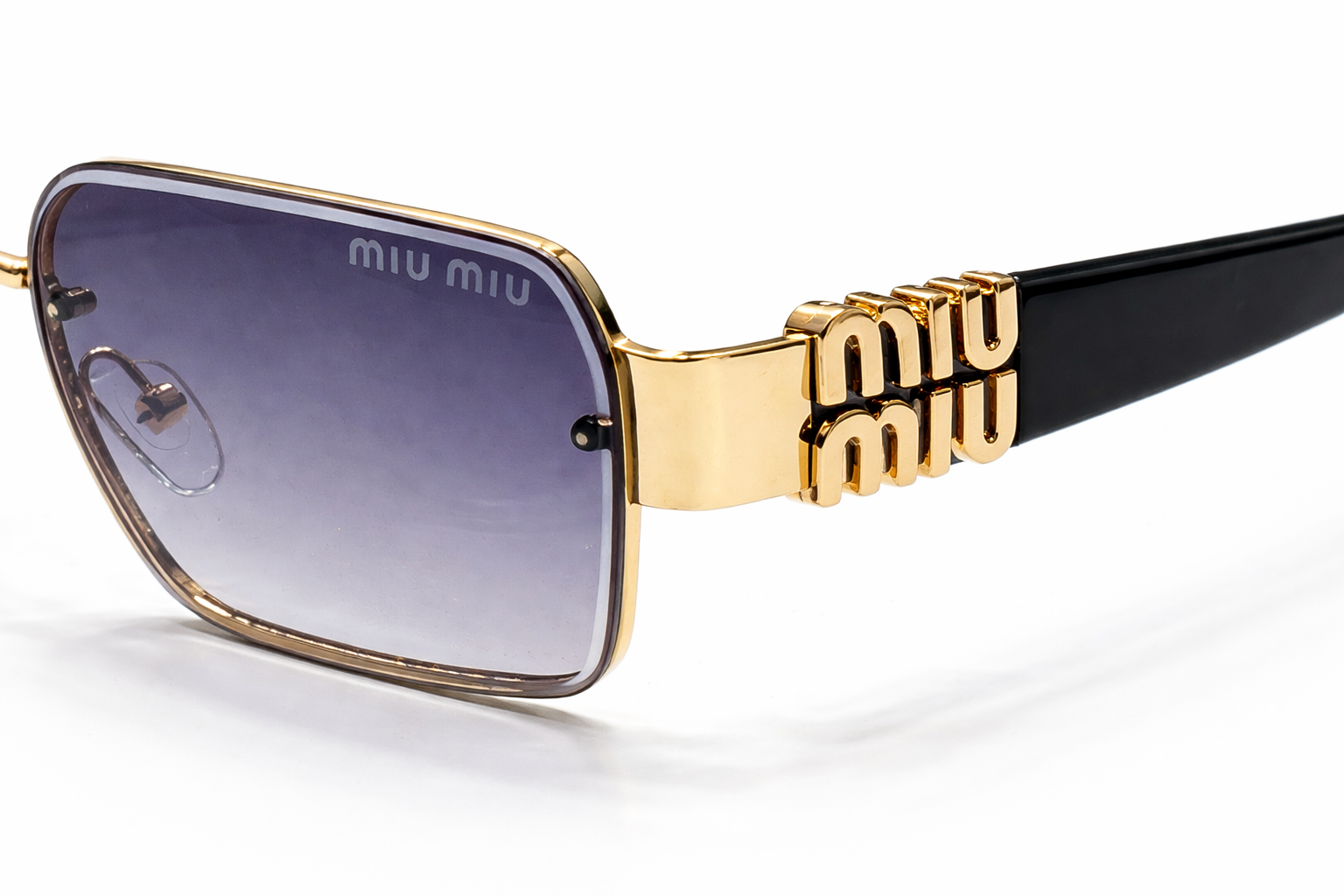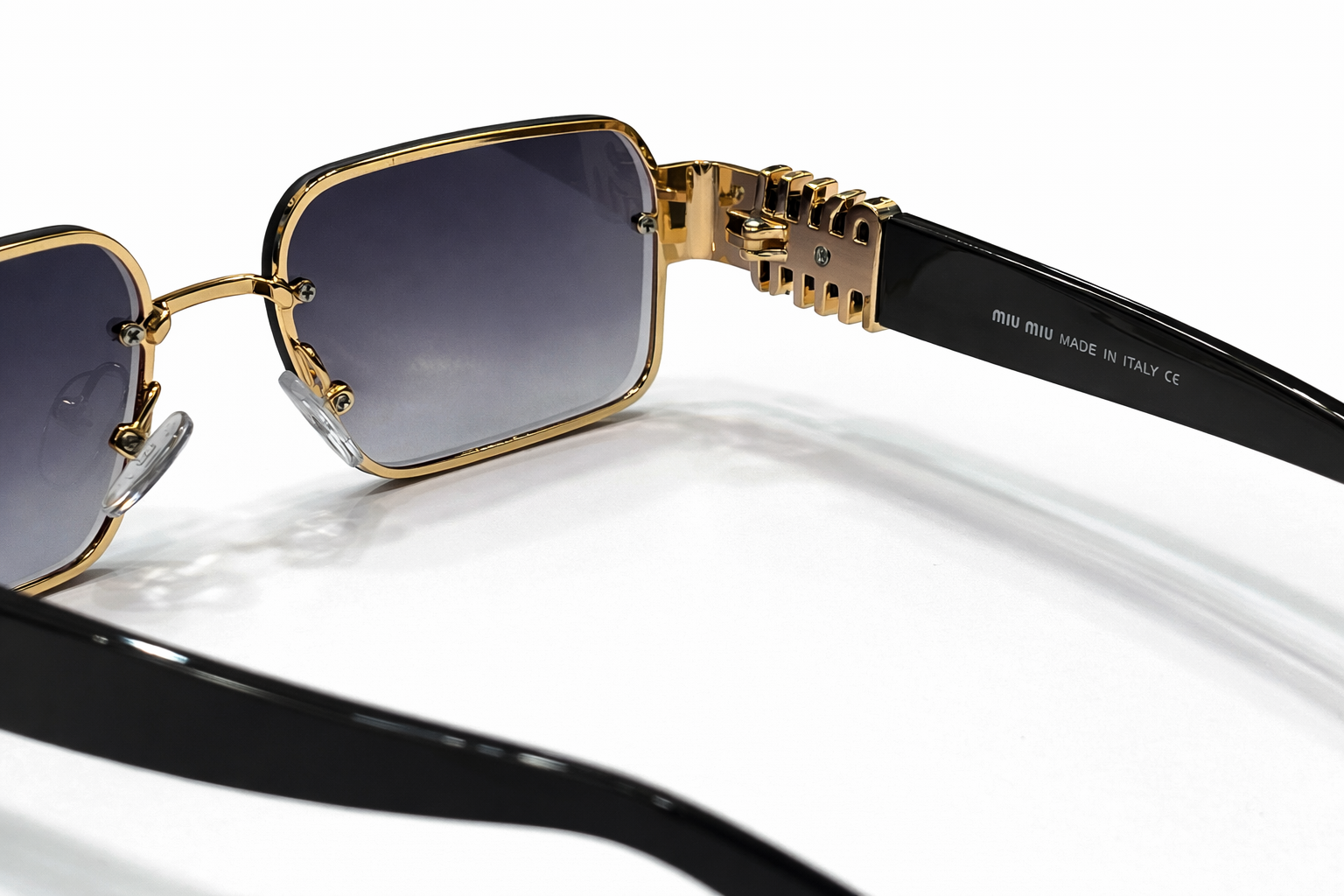 - Signature MIU MIU Logo Hinges – Iconic stacked logo detailing