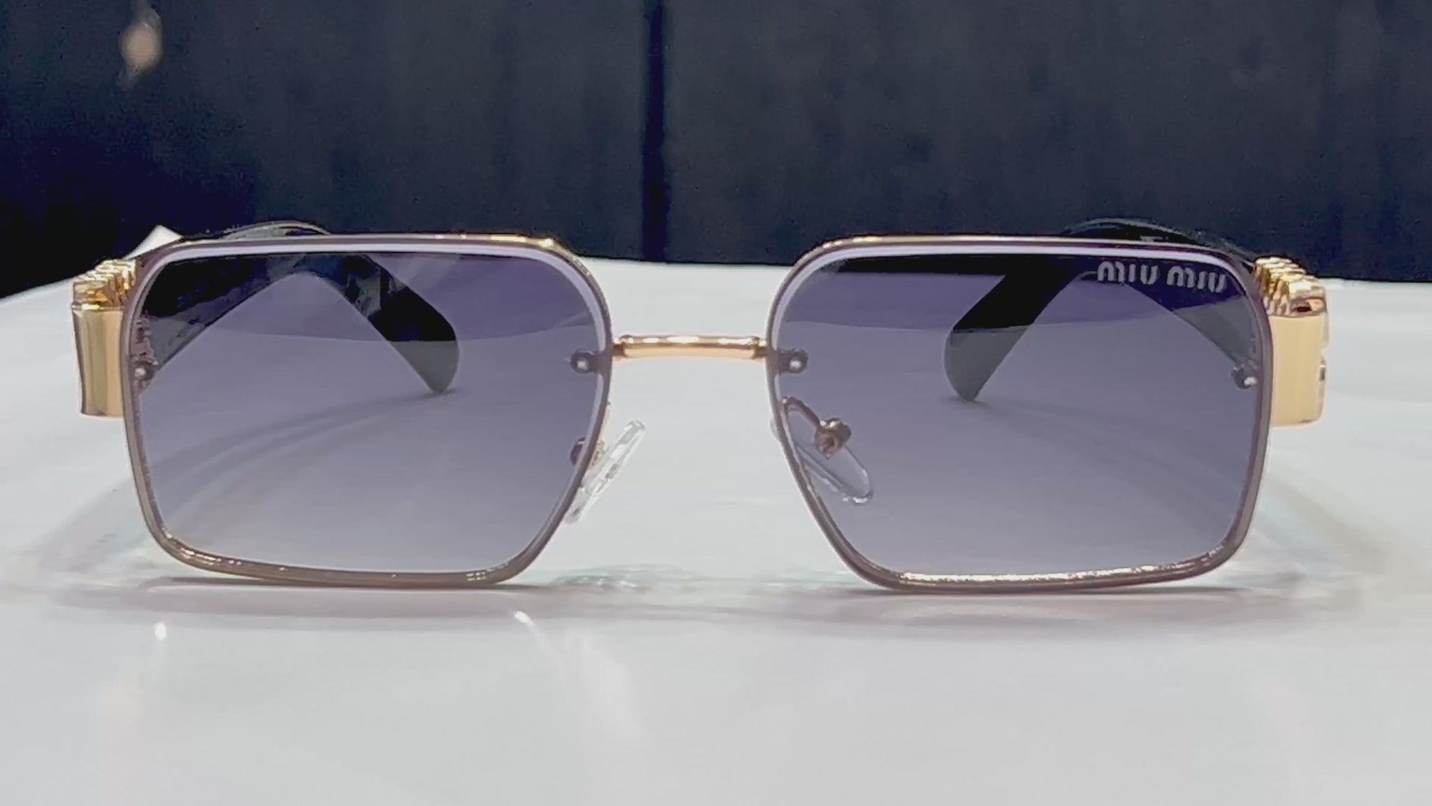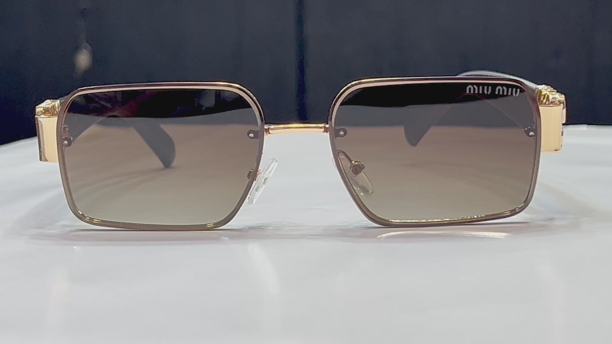 Make a bold yet elegant statement with these MIU MIU Square Gold Metal Sunglasses, designed for those who appreciate refined luxury and standout details. Featuring a sleek gold metal frame, signature MIU MIU logo hinges, and gradient lenses, this design blends timeless sophistication with modern fashion.